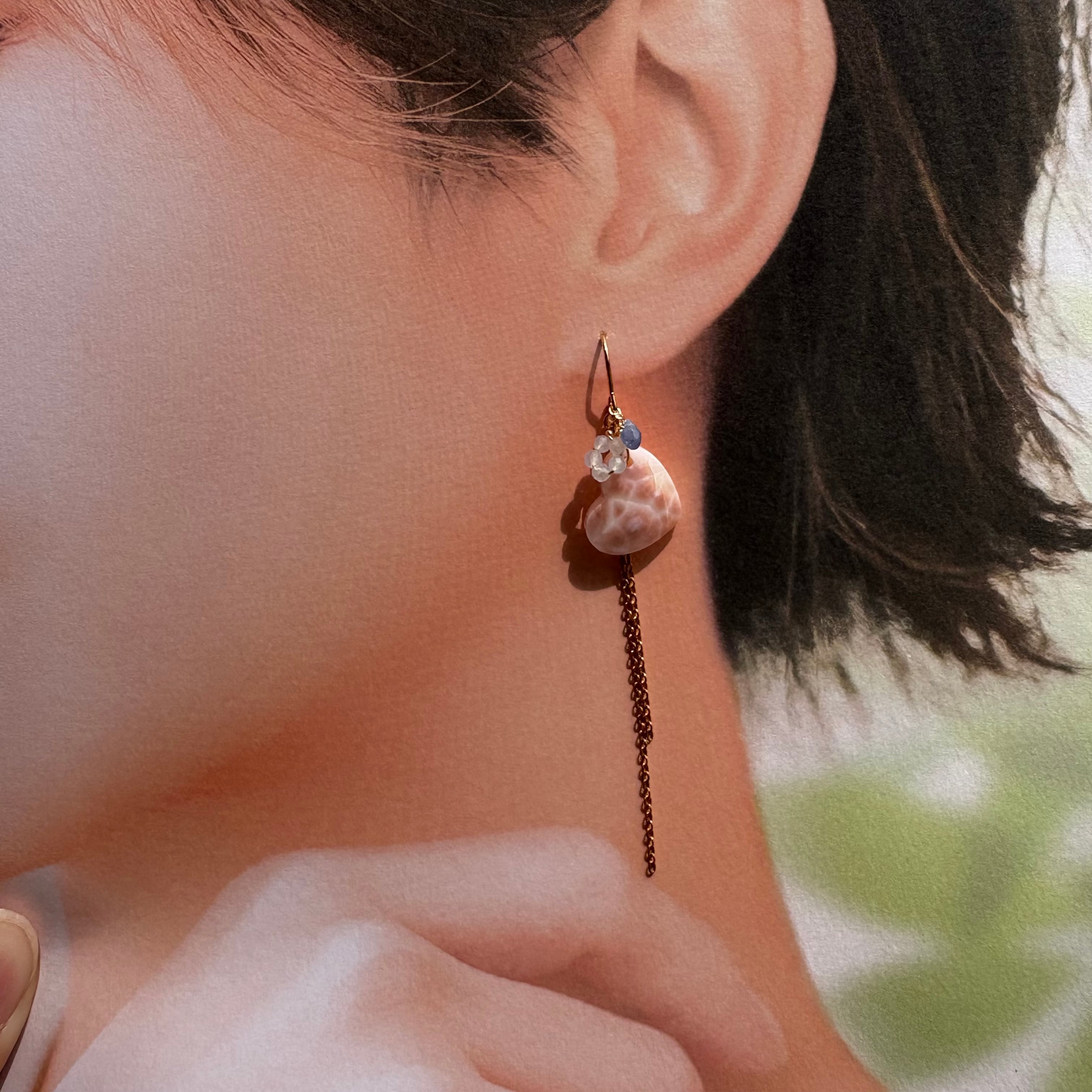小粒天然石とサファイアのドロップを添えて