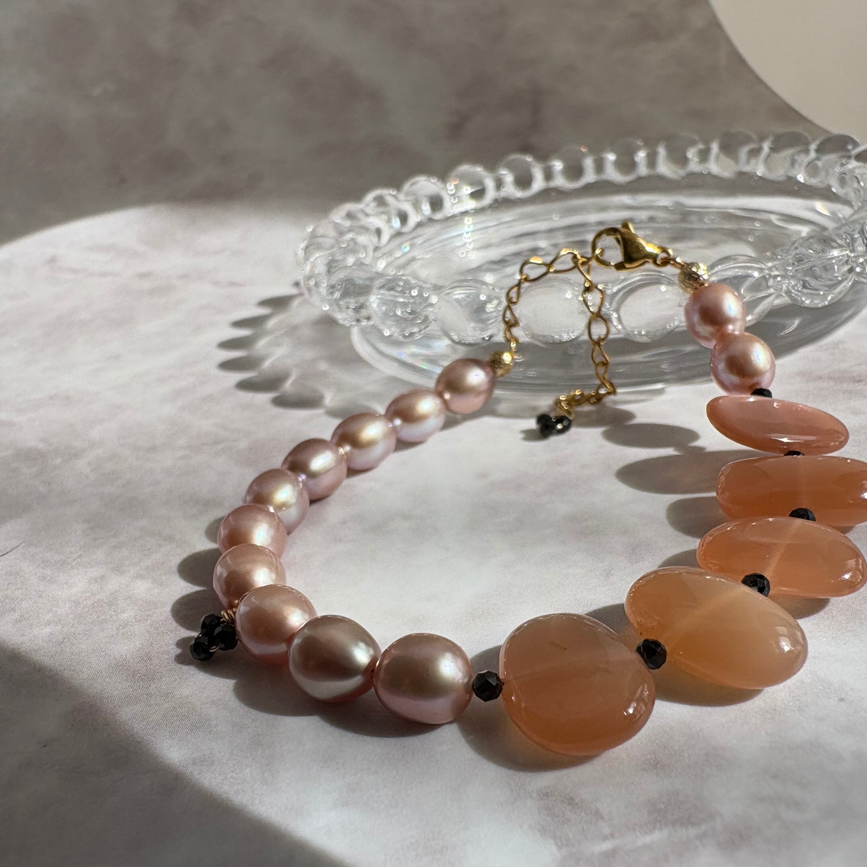 【オレンジムーンストーン・ブラックスピネル・ブラウンパール】