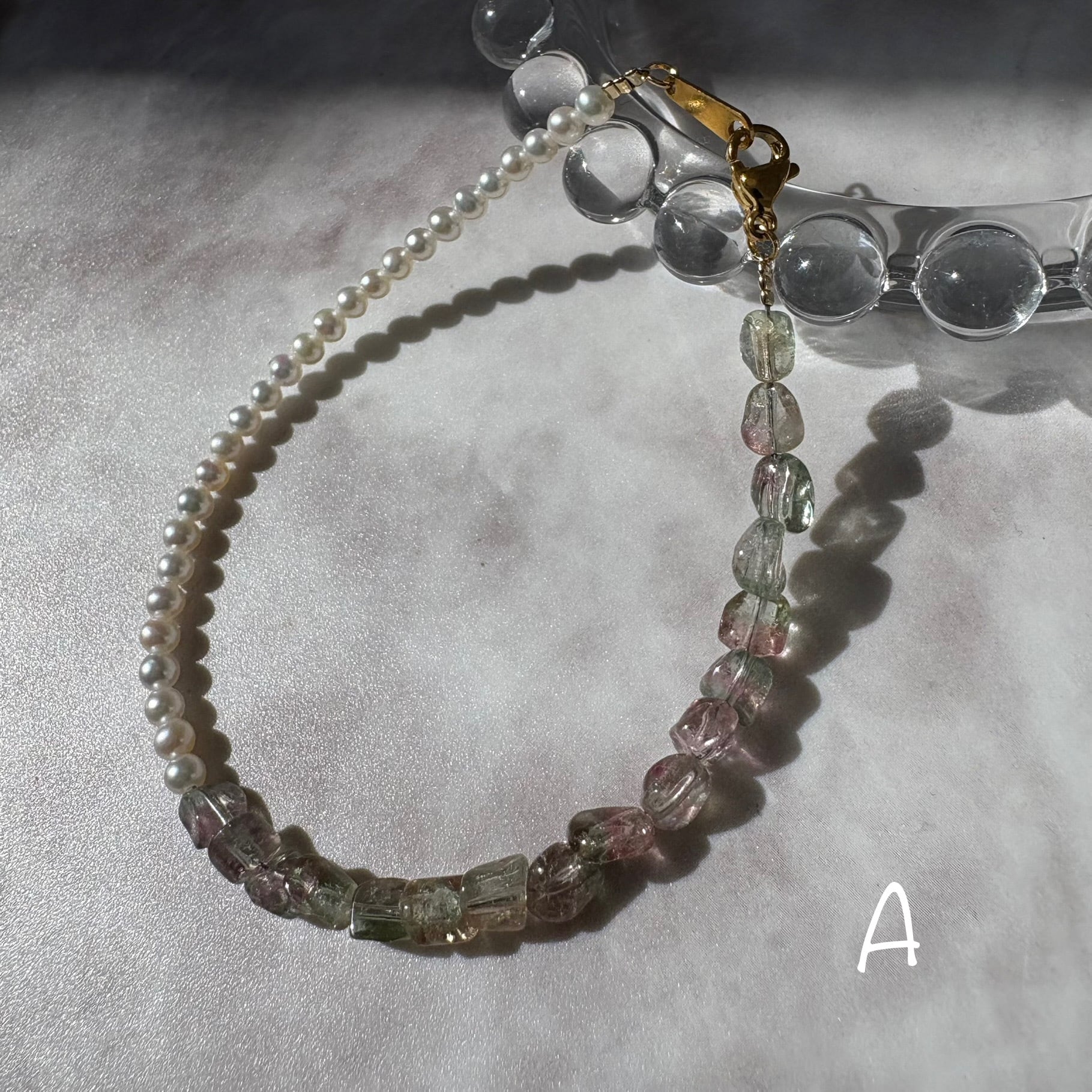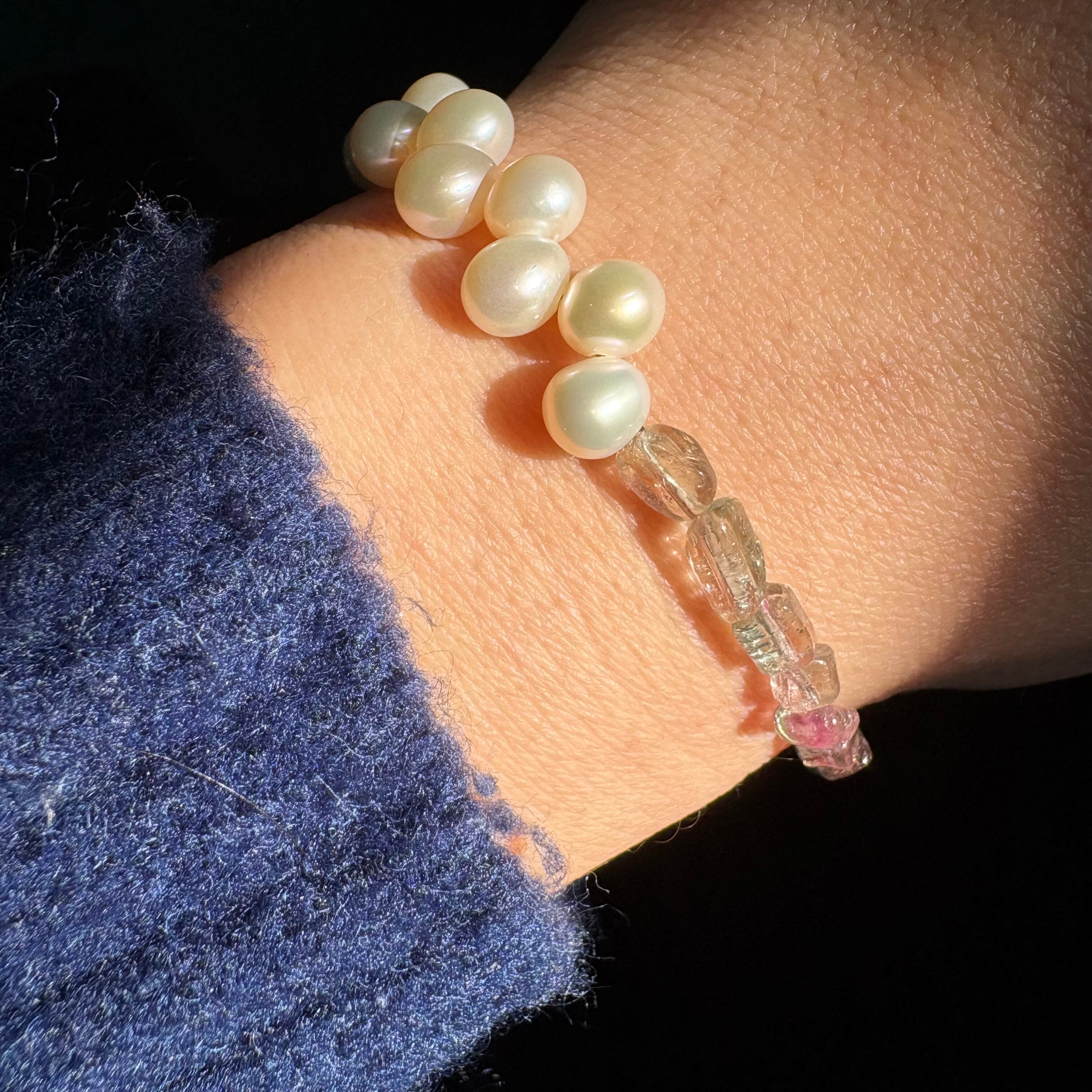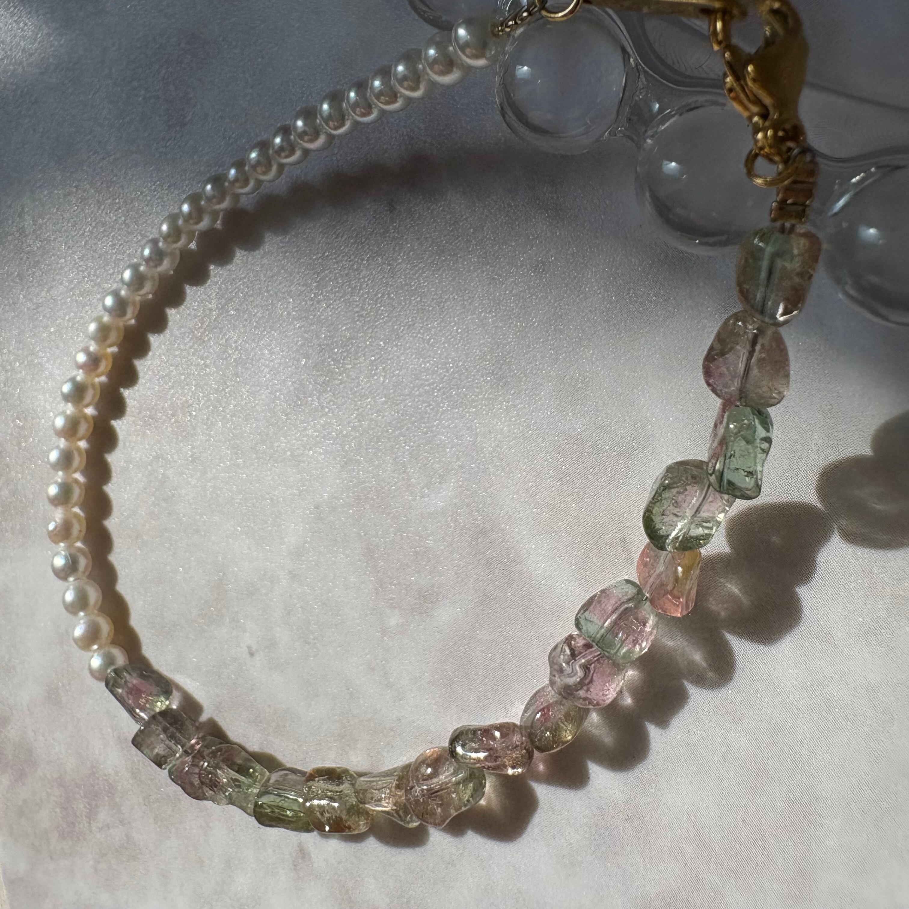 【移ろう色、まどろむ真珠】 | バイカラートルマリン×淡水パール Bracelet【no.59】