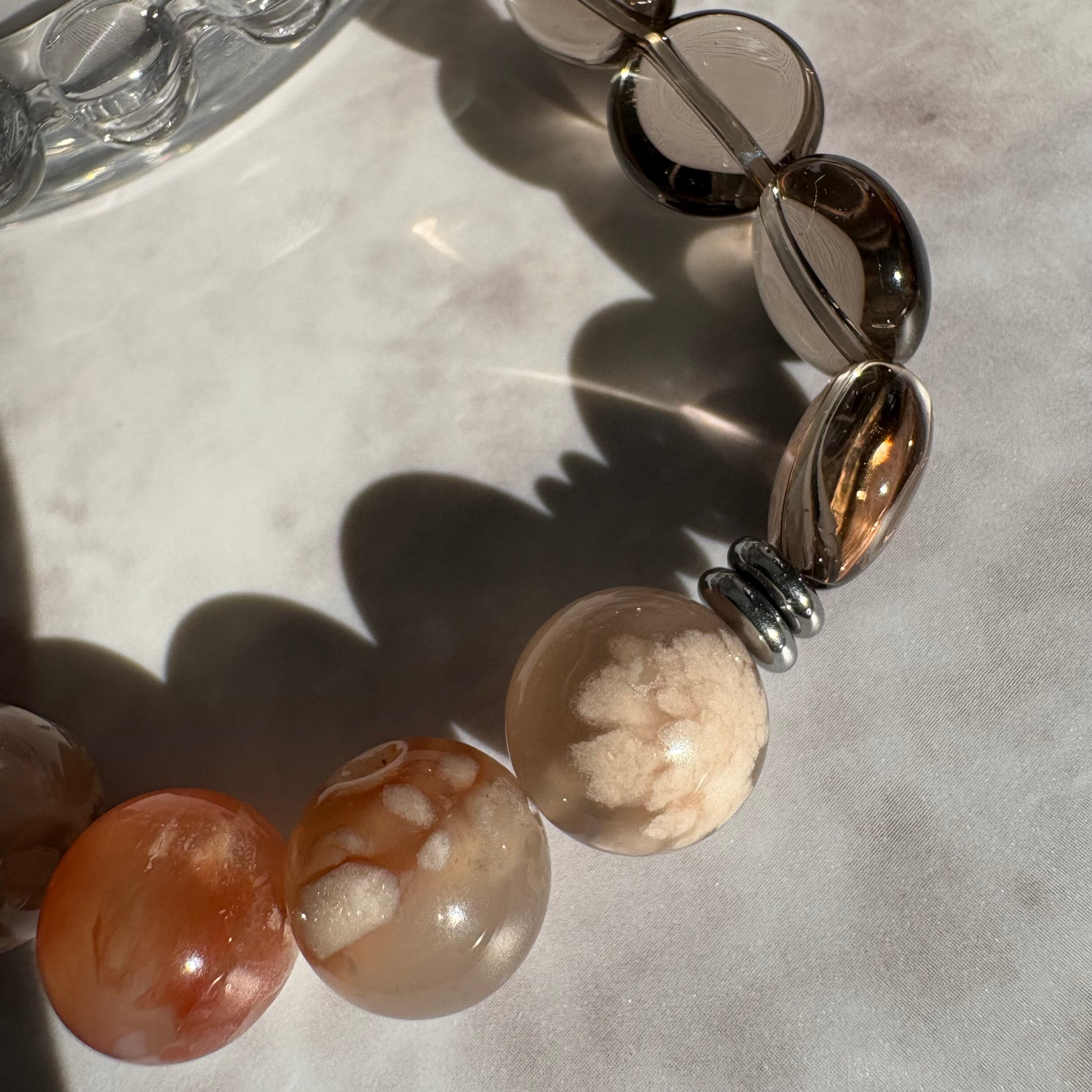 桜瑪瑙と天然石のハーフ&ハーフブレスレット