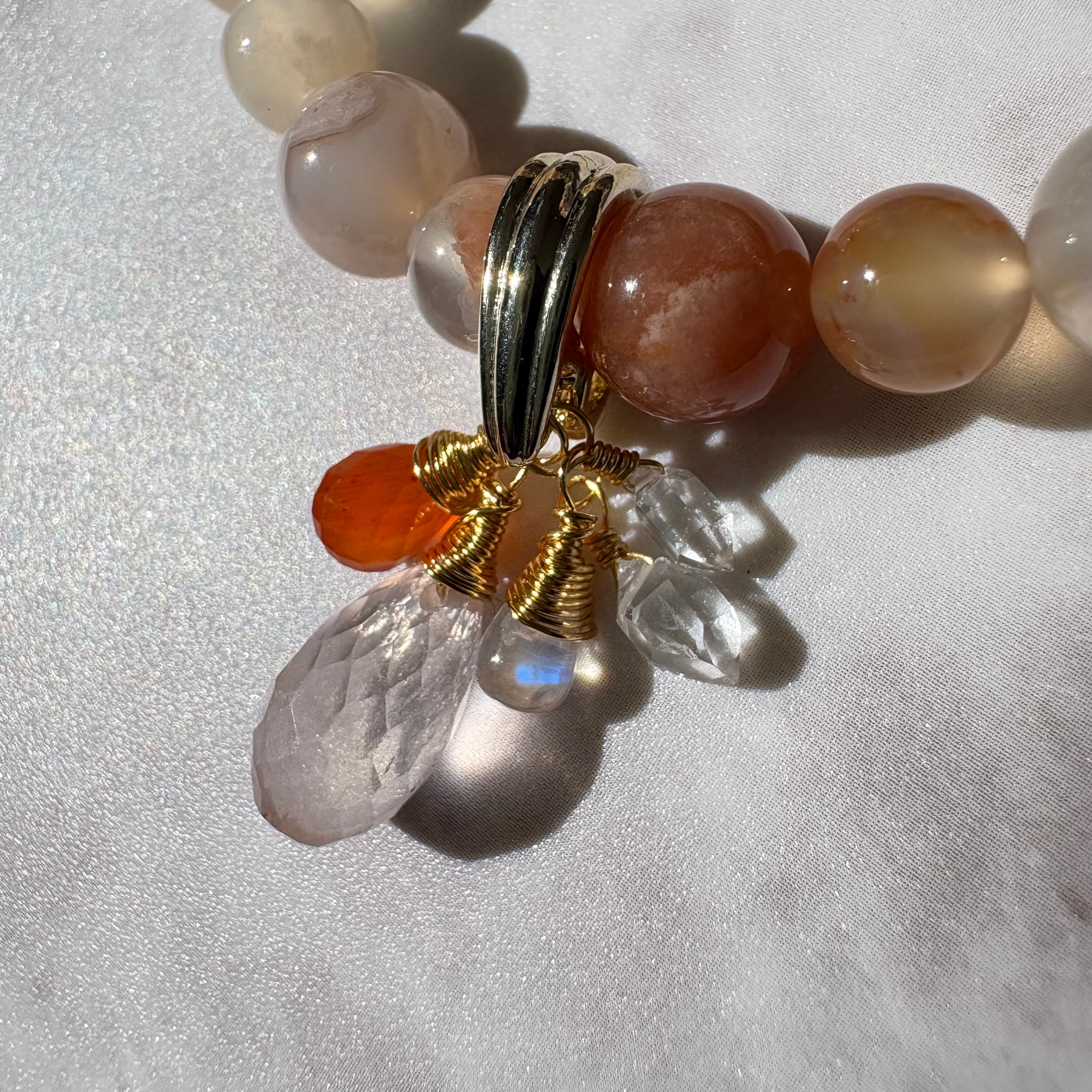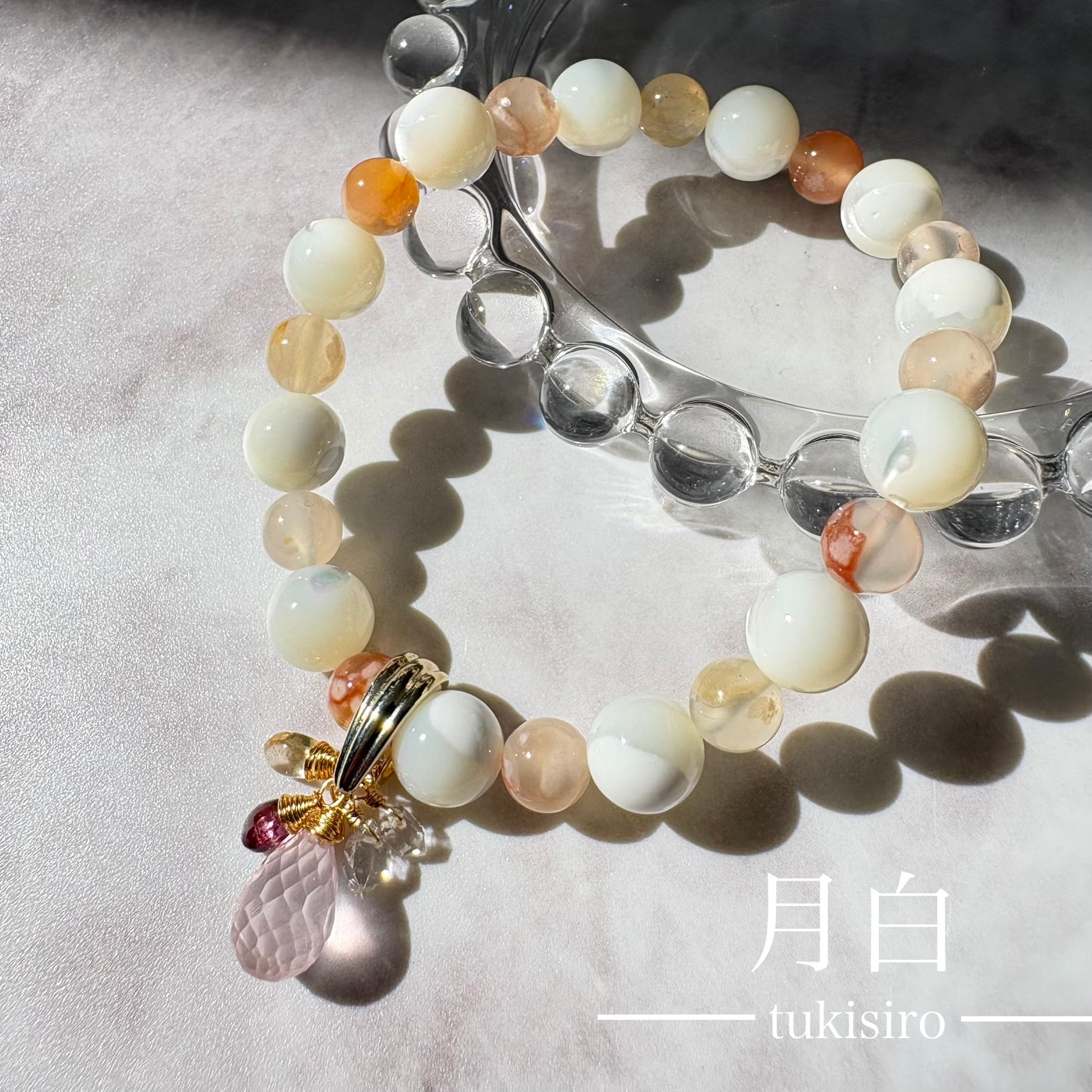 【春の雫、揺れる光】| 桜瑪瑙×天然石 2WAYクリッカーチャーム Bracelet【no.61】