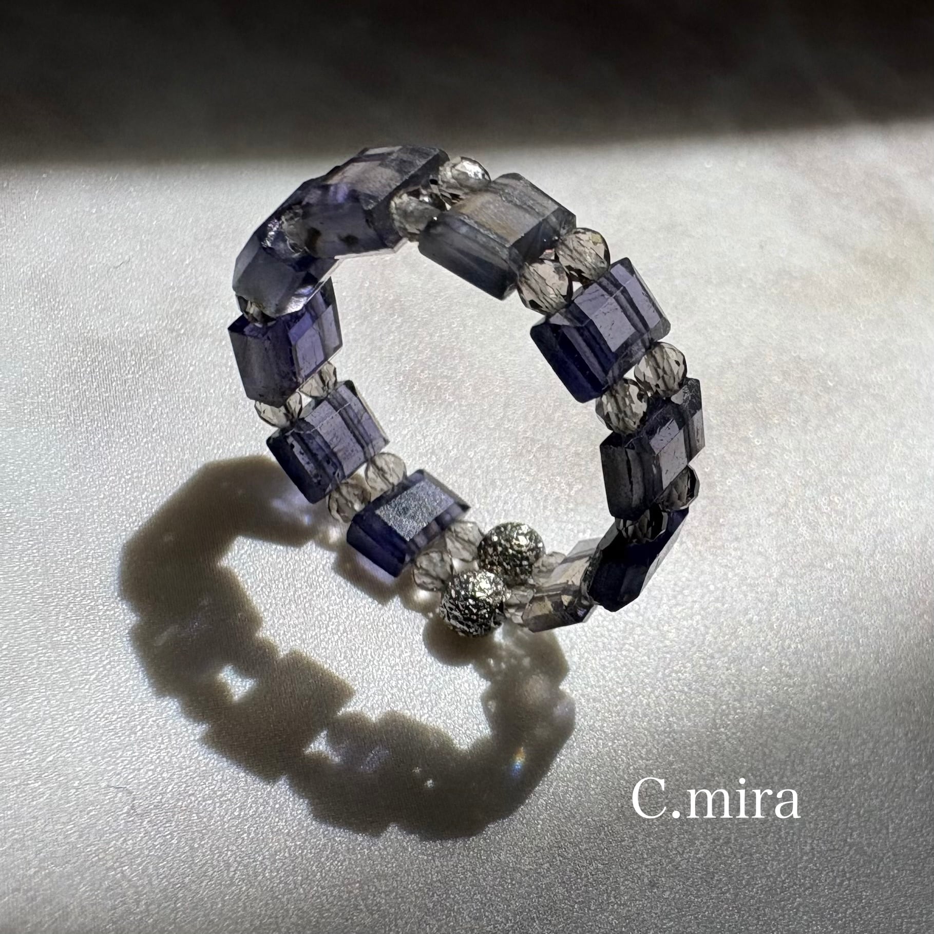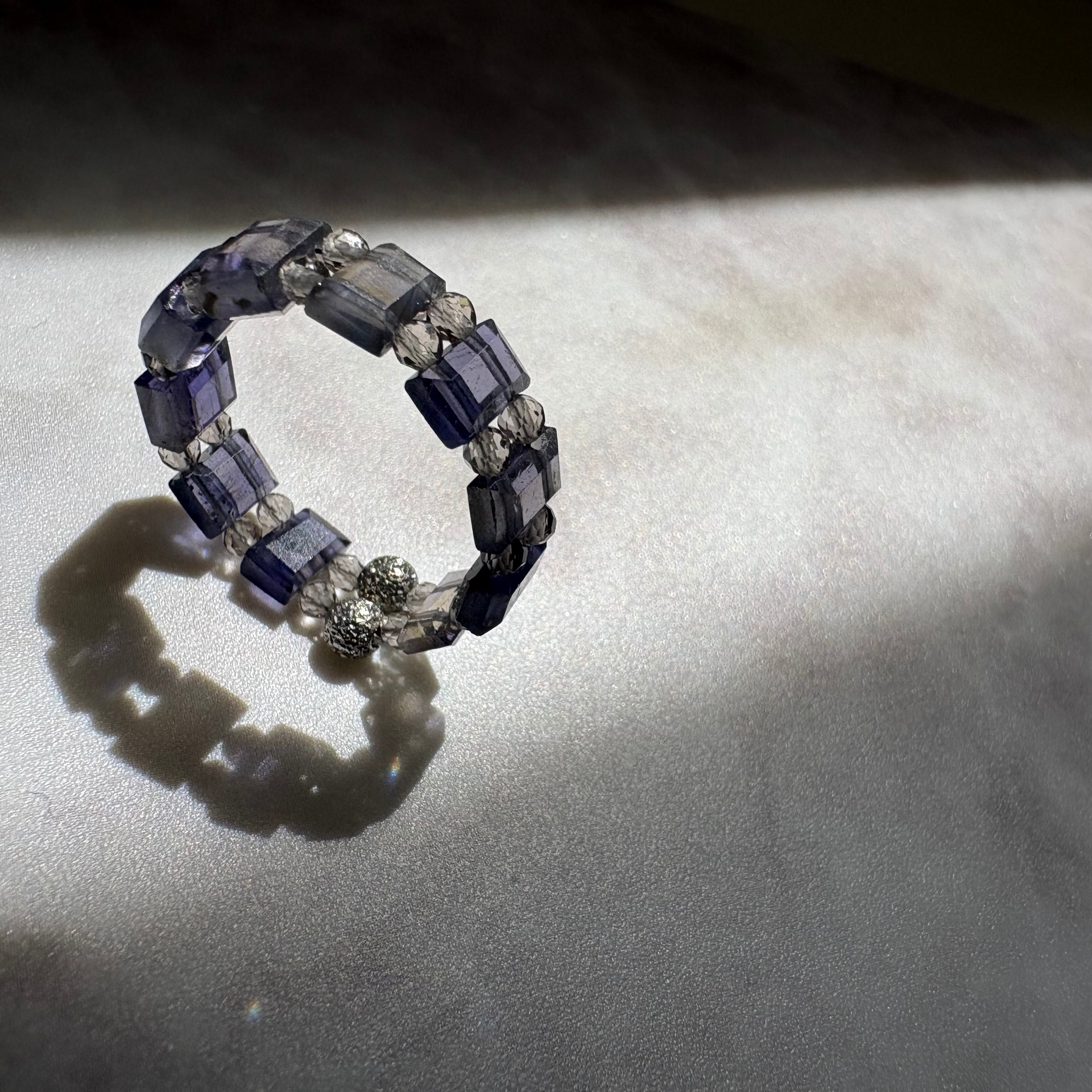 アイオライトと光の直線美リング