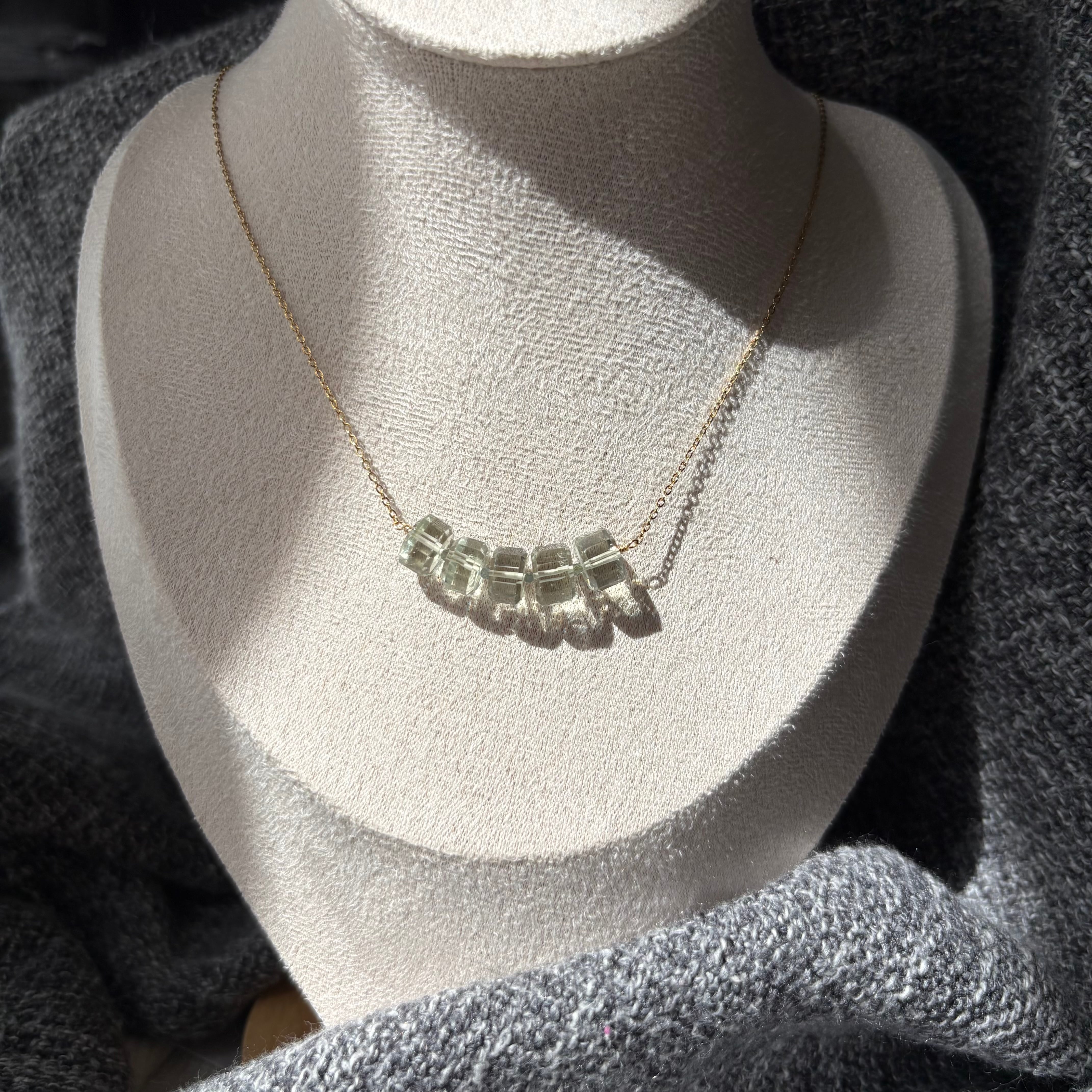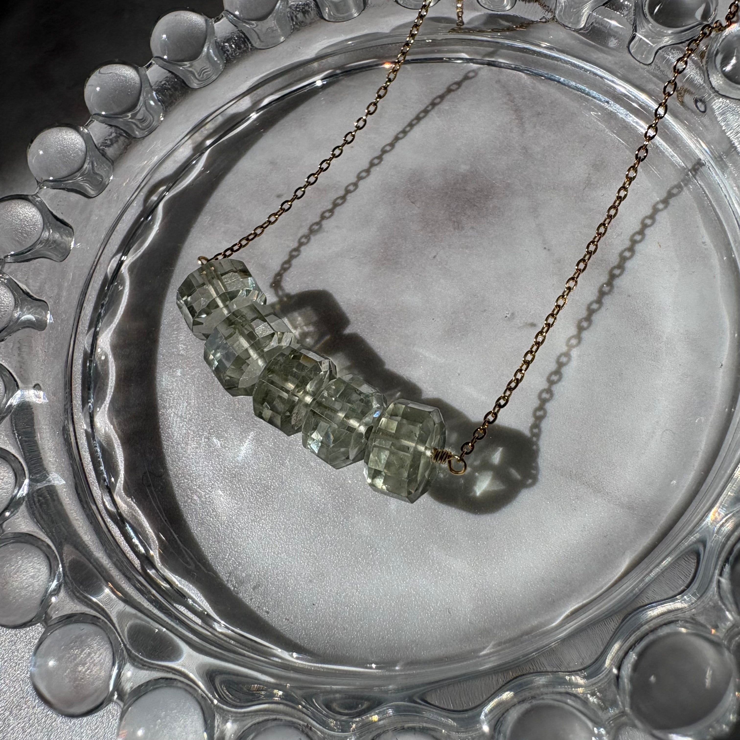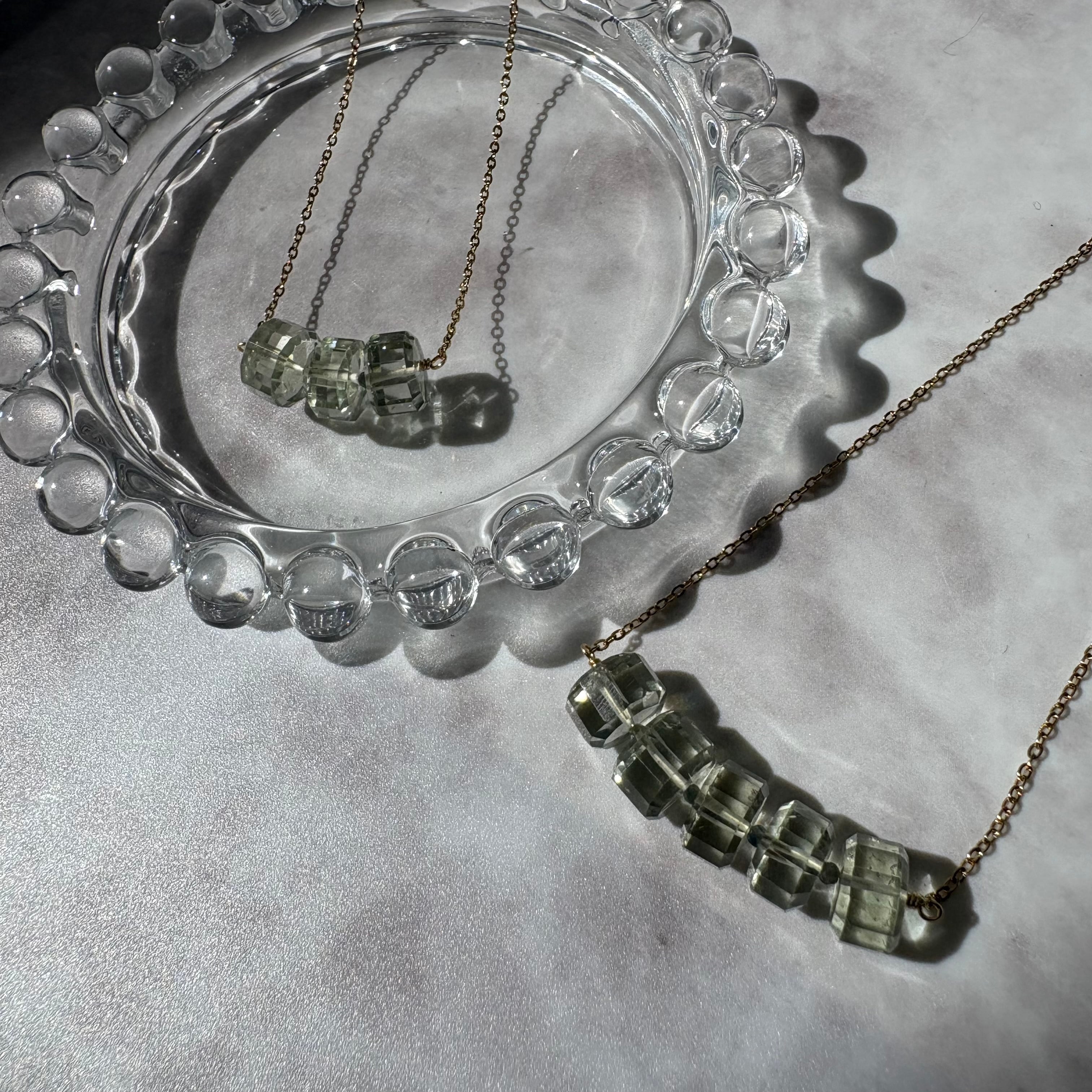 【密やかな森の露】| グリーンアメジストとサファイアの曲線美ネックレス Necklace【no.12】