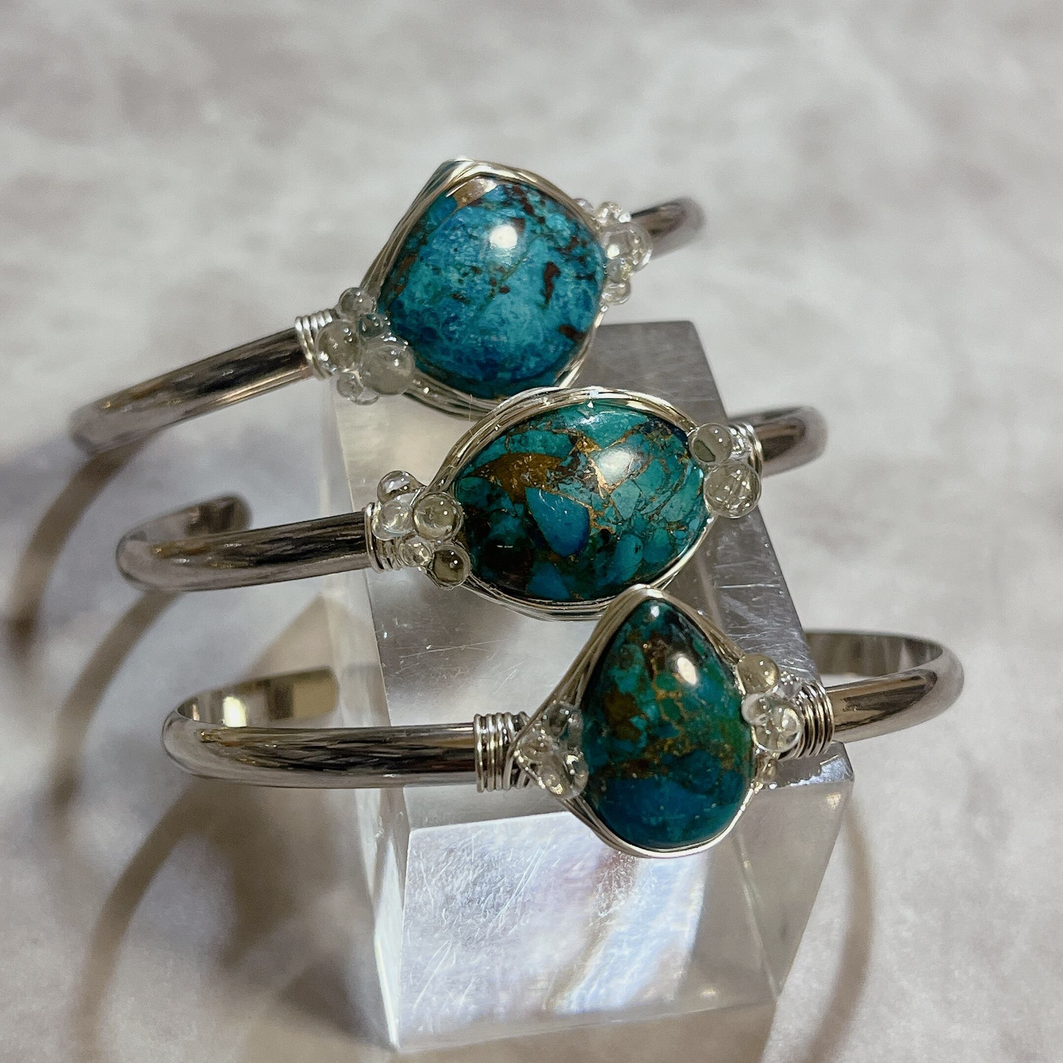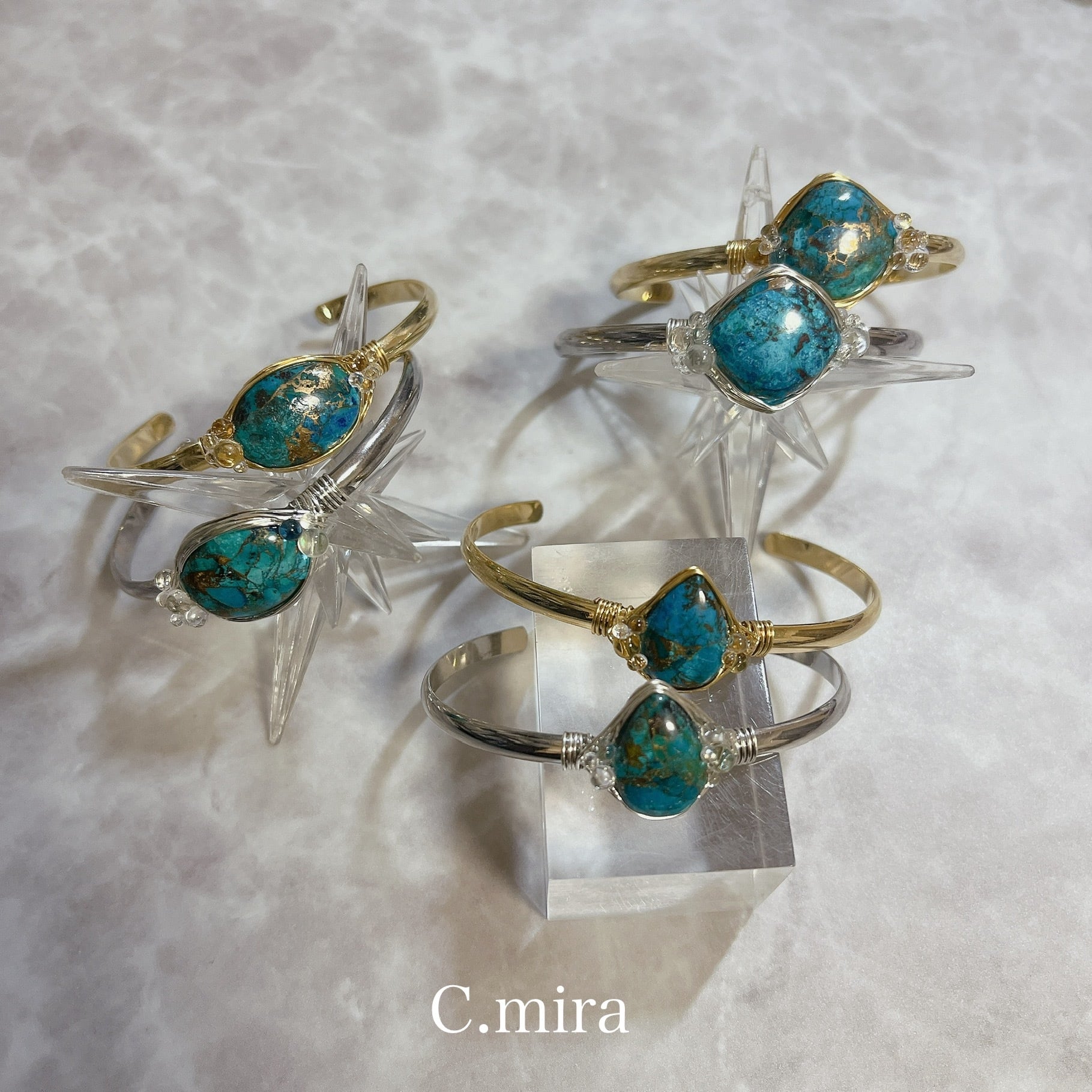 • 素材: クリソコラ・コンポジットストーン / ガラス / ワイヤー / メッキ(アレルギー防止・変色防止加工)