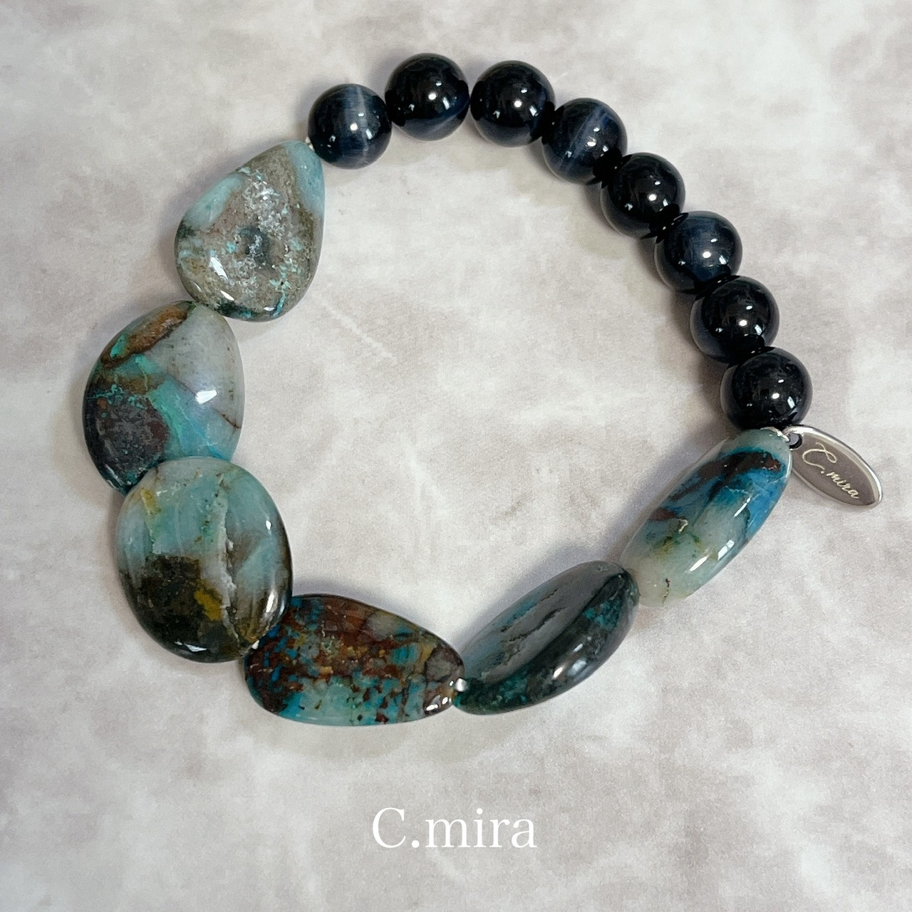 深みのあるブルーブラックを光にかざすことによってあらわれる鷹目模様が特徴的です。