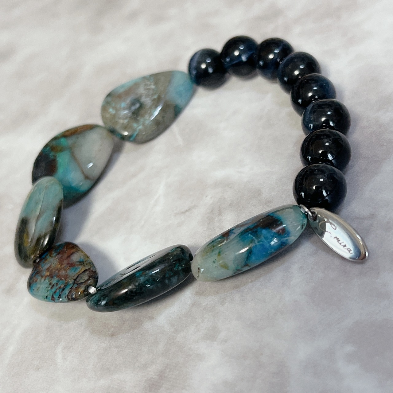 アズライトが空気中の水分を吸収してマラカイトに変化していく途中の色味。青緑のアズロマラカイト