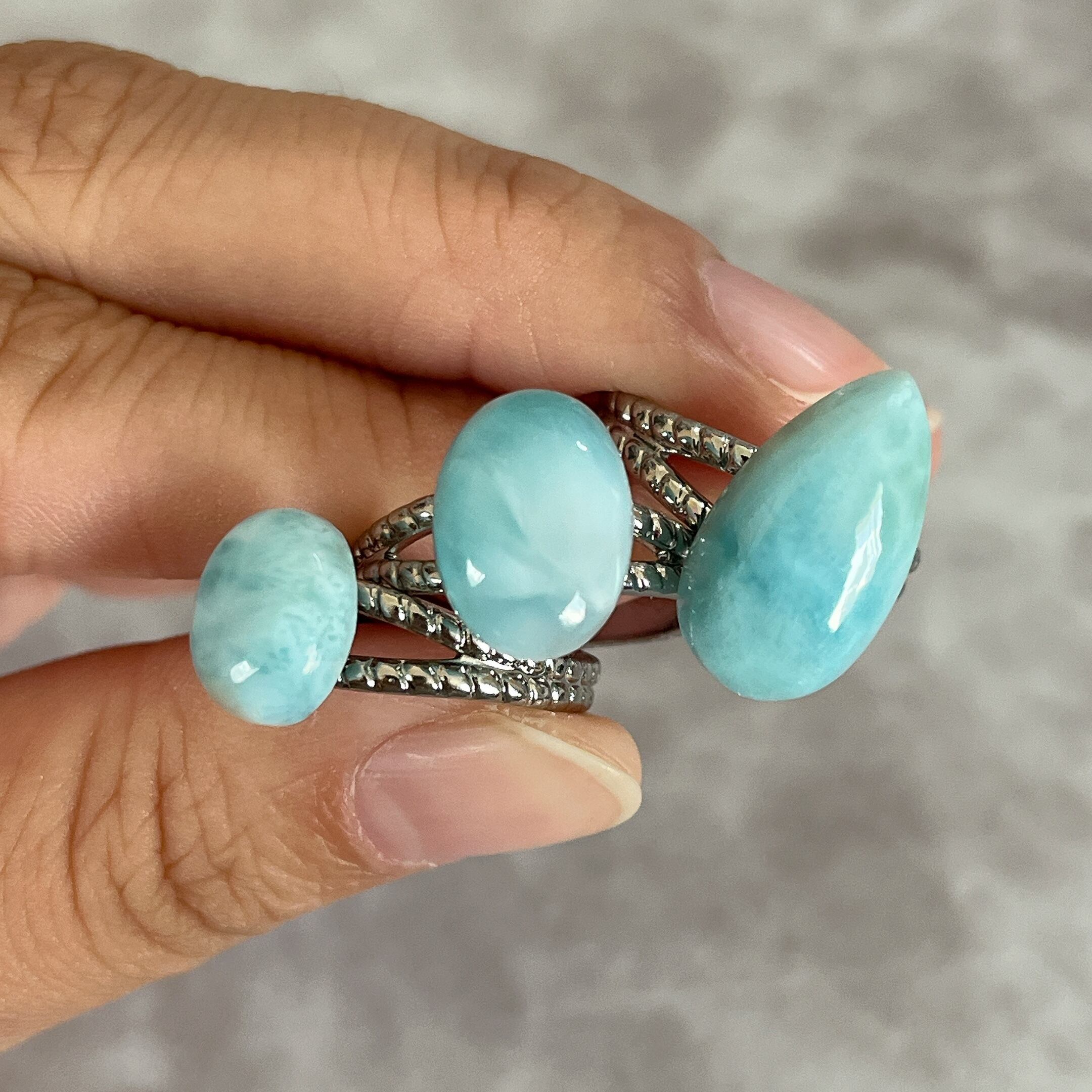 ラリマー特有の波模様が3つの中で1番でています。